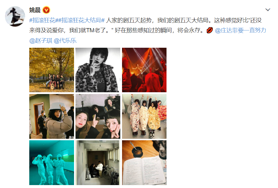 -组图:姚晨发文告别《摇滚狂花》:那些感知过的瞬间将会永存