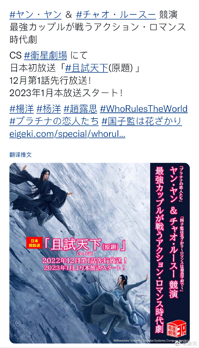 -组图:杨洋赵露思主演《且试天下》将于12月在日本播出