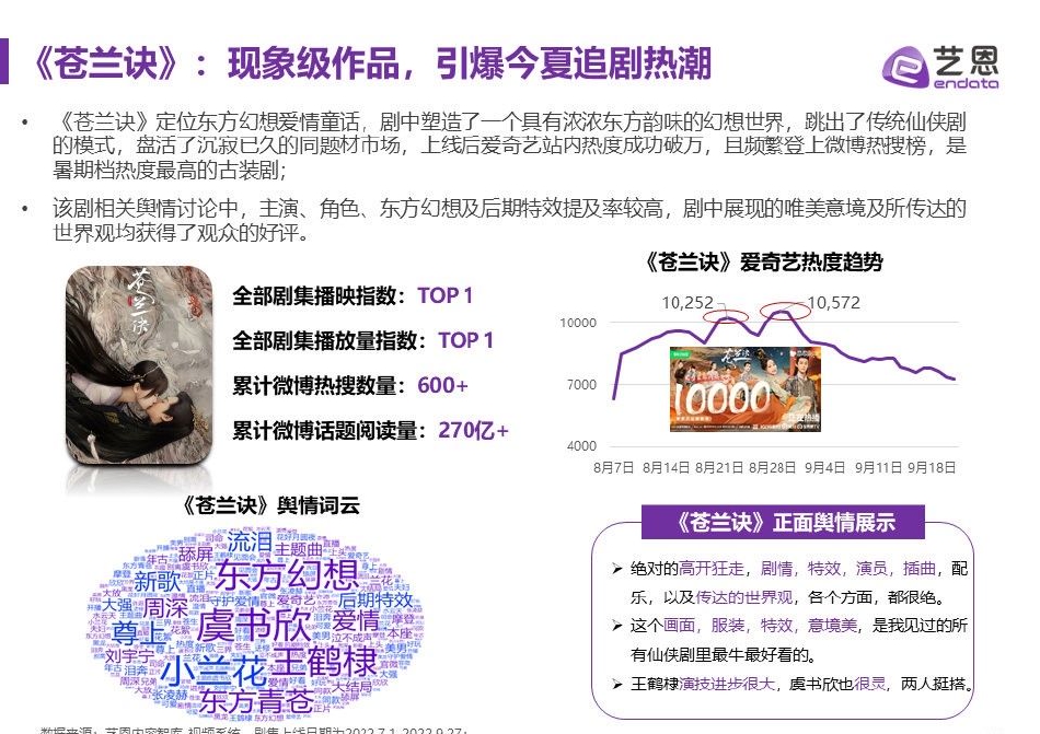 -组图:2022国产剧市场研究报告公布 《苍兰诀》成Q3热度最高剧集