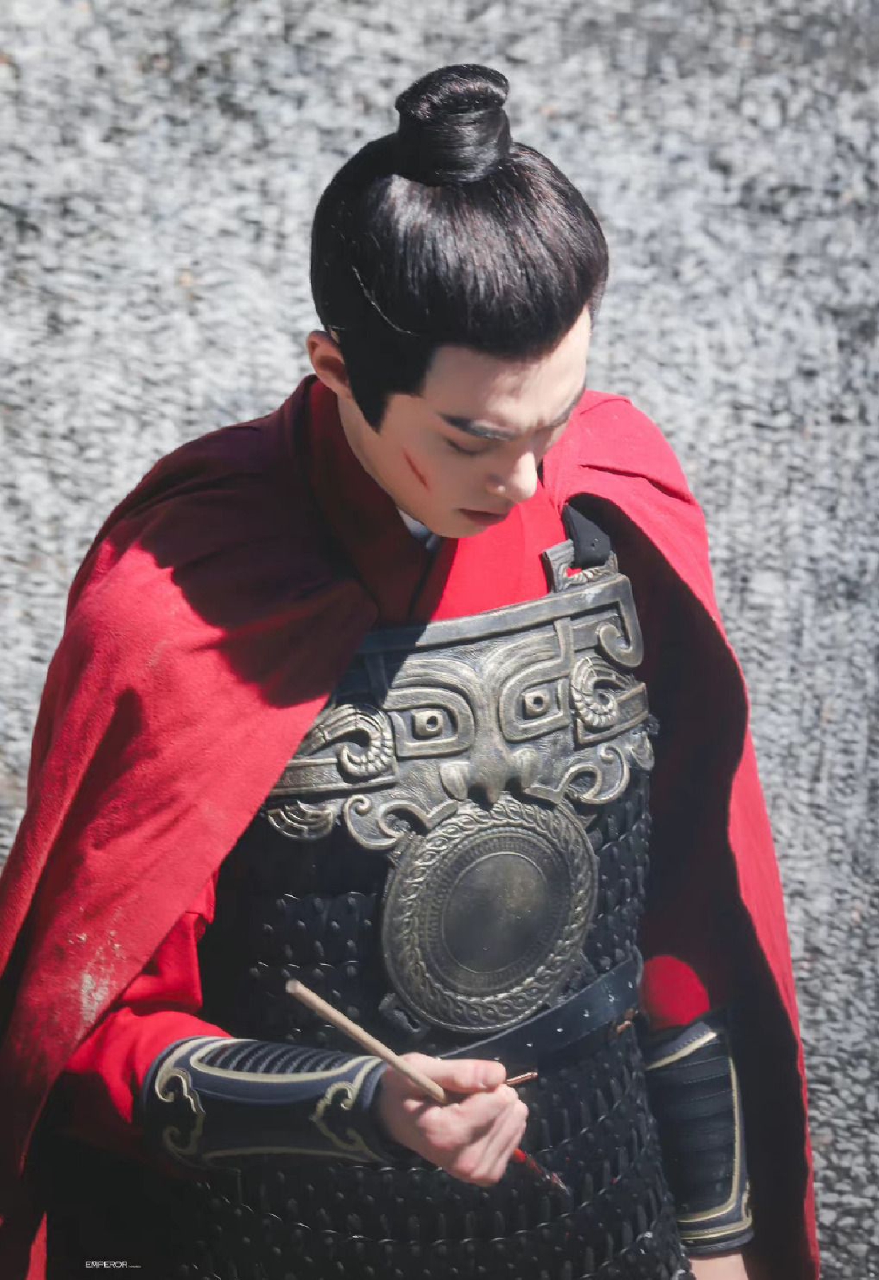 -组图:王鹤棣《浮图缘》饭拍路透 红衣铠甲战损妆帅气十足