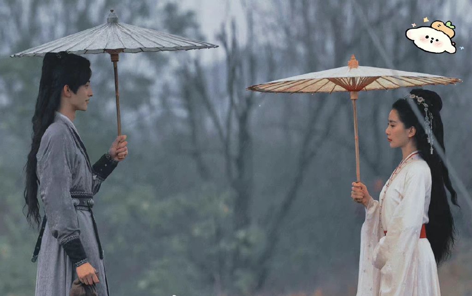 -组图:刘诗诗常华森《一念关山》同框路透 撑伞对视氛围感十足