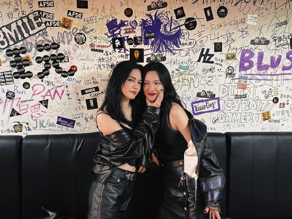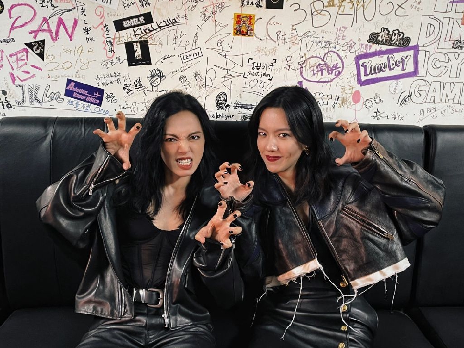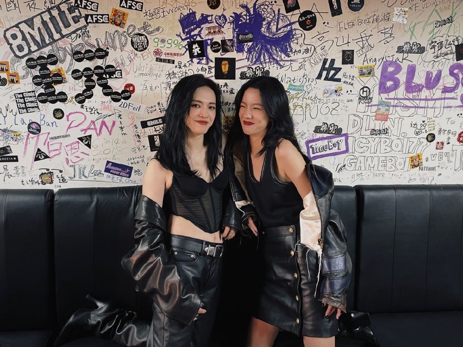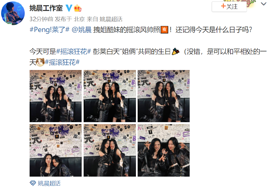 组图:姚晨庄达菲拽姐酷妹摇滚风帅照 亲密贴贴嘟嘴献吻关系好