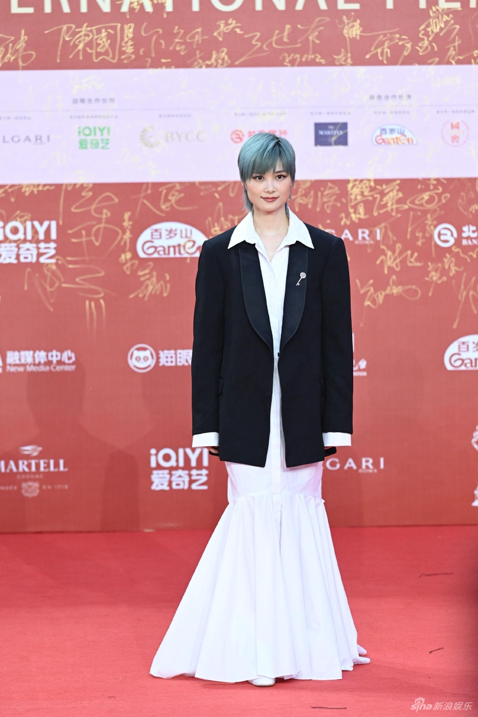 -组图:李宇春亮相北影节红毯 蓝发配西装长裙抢眼
