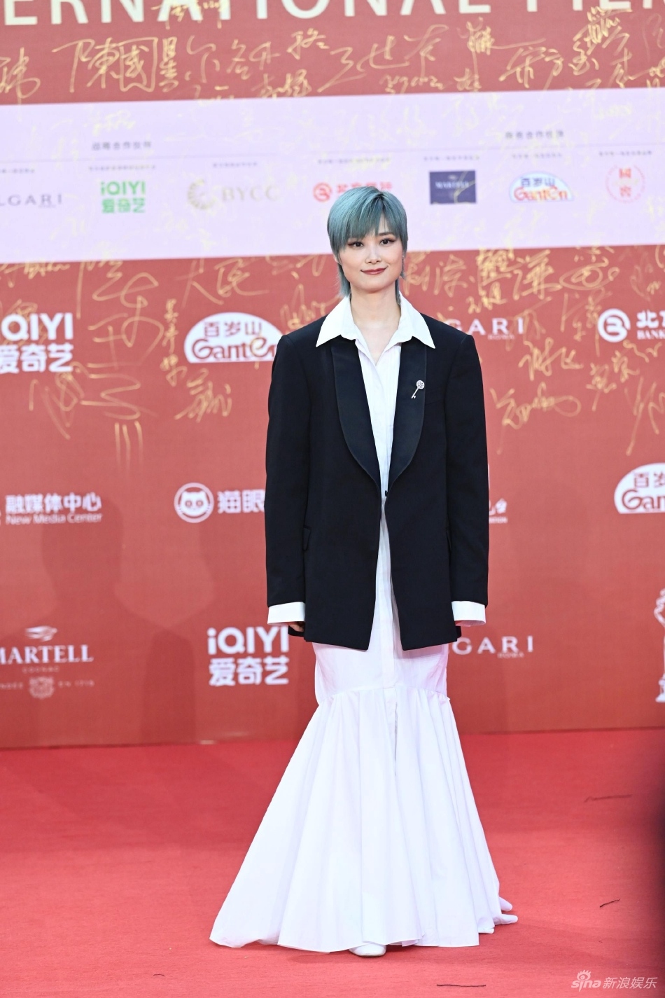 组图:李宇春亮相北影节红毯 蓝发配西装长裙抢眼
