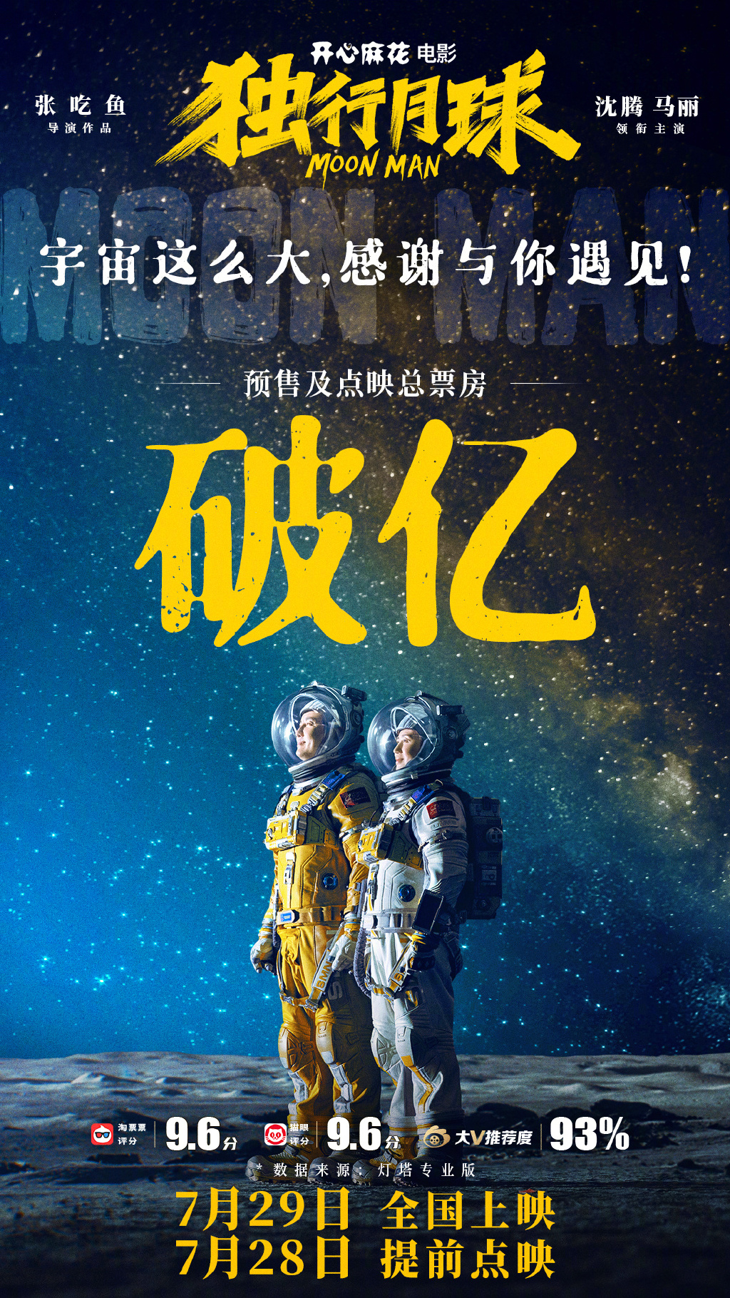 短视娱乐讯 7月28日中午,由沈腾、马丽主演的开心麻花科幻喜剧《独行月球》点映及预售票房破亿,此时距离该片正式上映(7月29日)还有一天。