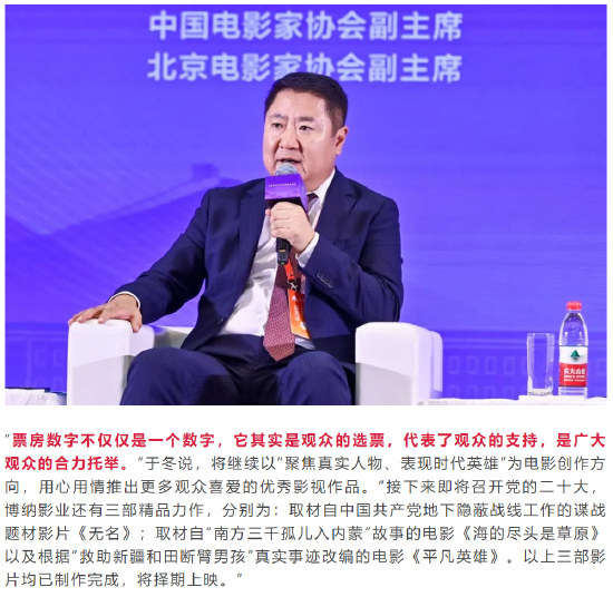 短视娱乐讯 7月26日,首届北京文化论坛“文艺精品创作与传播”分论坛在北京举办。博纳影业集团董事长于冬受邀出席论坛并发言。他透露道:“取材自中国共产党地下隐蔽战线工作的谍战题材影片《无名》;取材自“南方三千孤儿入内蒙”故事的电影《海的尽头是草原》以及根据“救助新疆和田断臂男孩”真实事迹改编的电影《平凡英雄》。以上三部影片均已制作完成,将择期上映。”